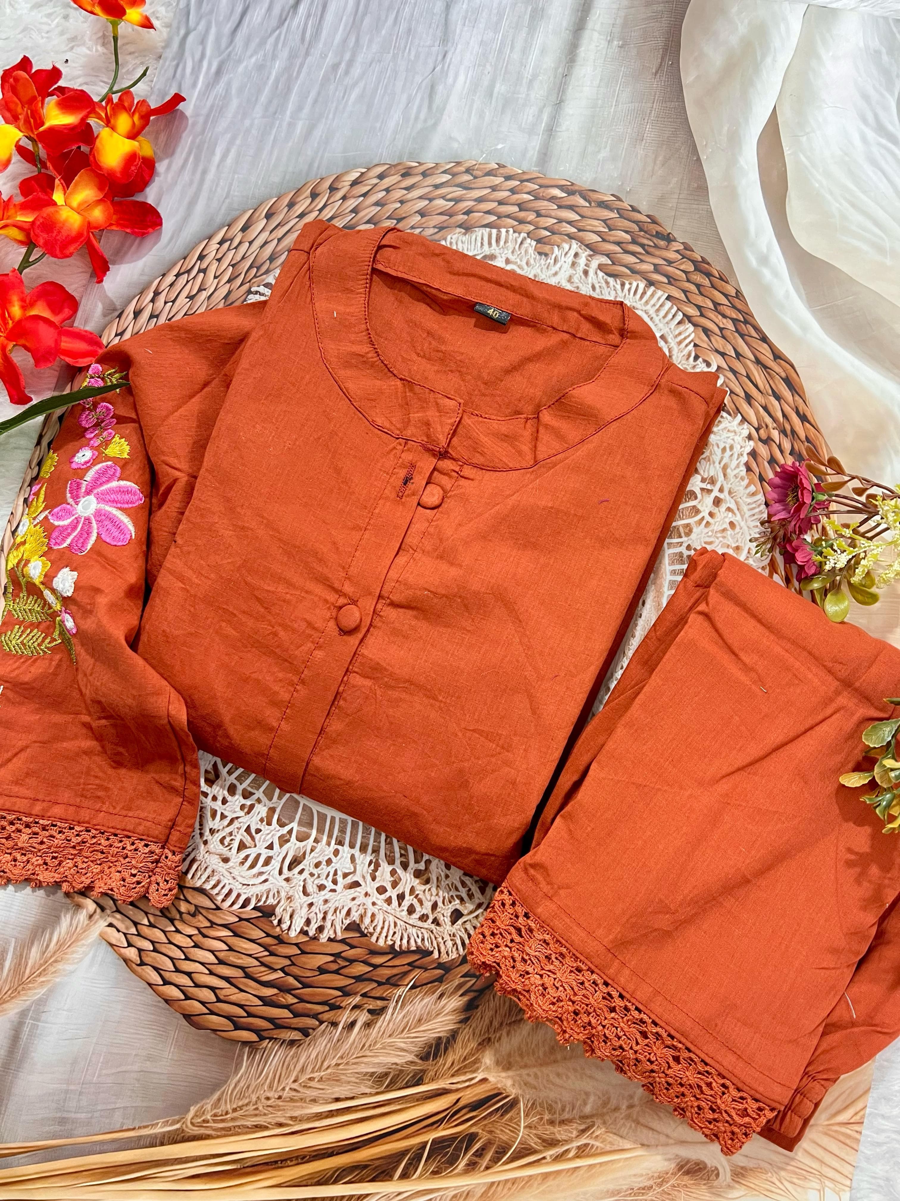 SF 18JU Pure cotton co-ord set embroidery in hand and back side