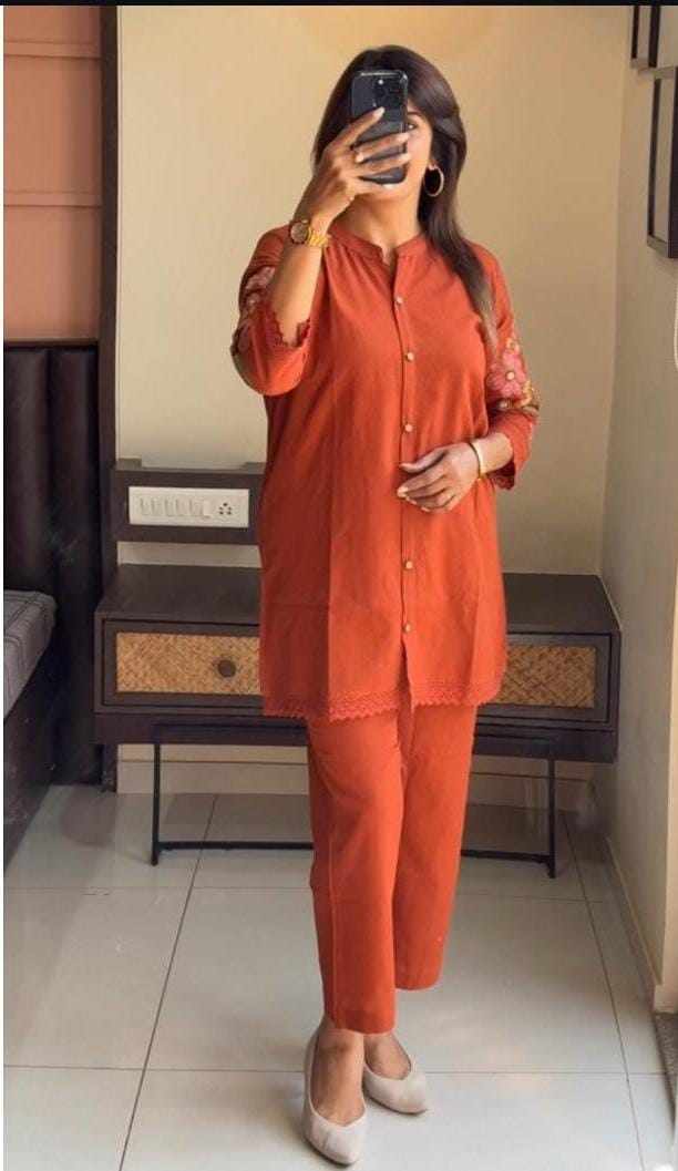 | Name : | SF 18JU Pure cotton co-ord set embroidery in hand and back side |