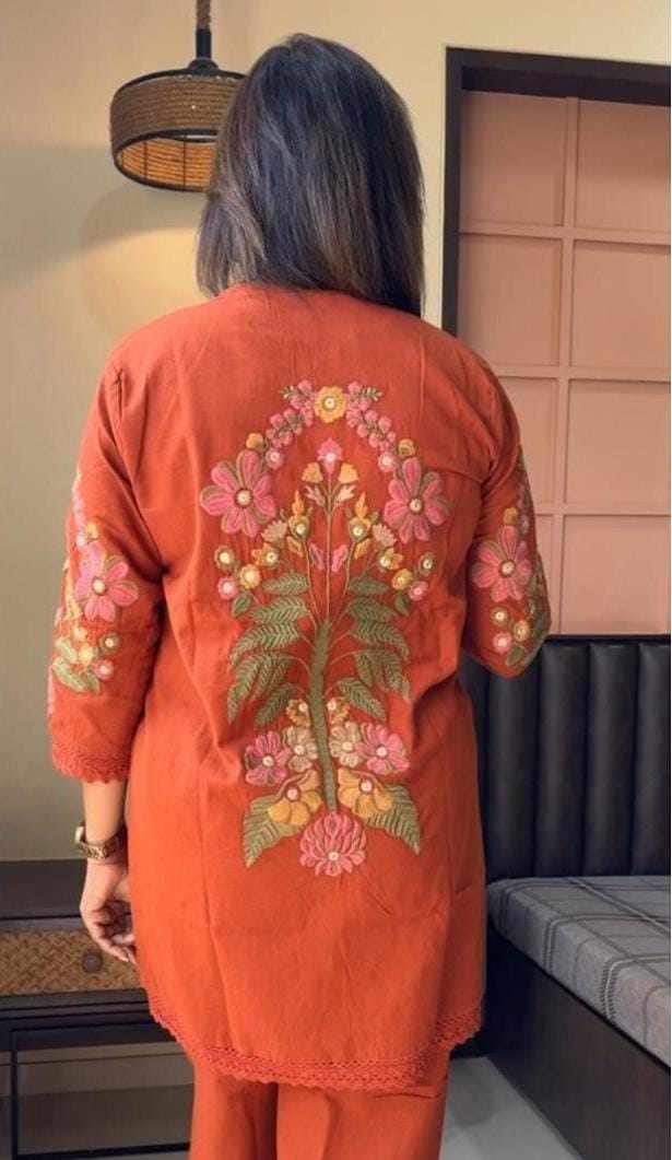 SF 18JU Pure cotton co-ord set embroidery in hand and back side has been successfully added to your cart .