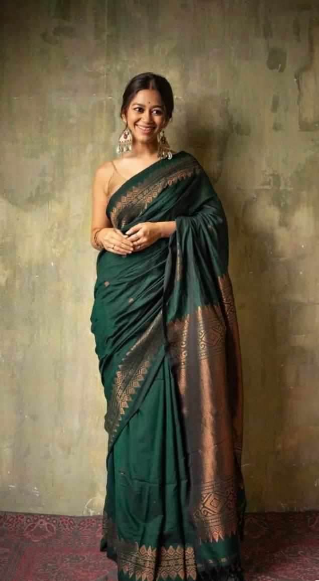 | Name : | MF 1950 GREEN BANARASI SOFT LICHI SILK SAREE |