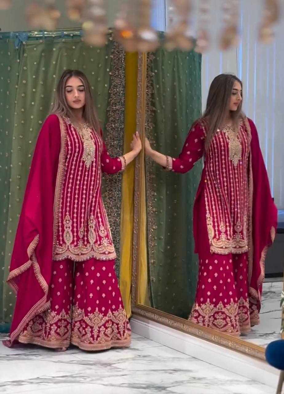 Plazzo Fabrics: Heavy Faux Georgette with 5mm Embroidery Sequence with Fully Flair