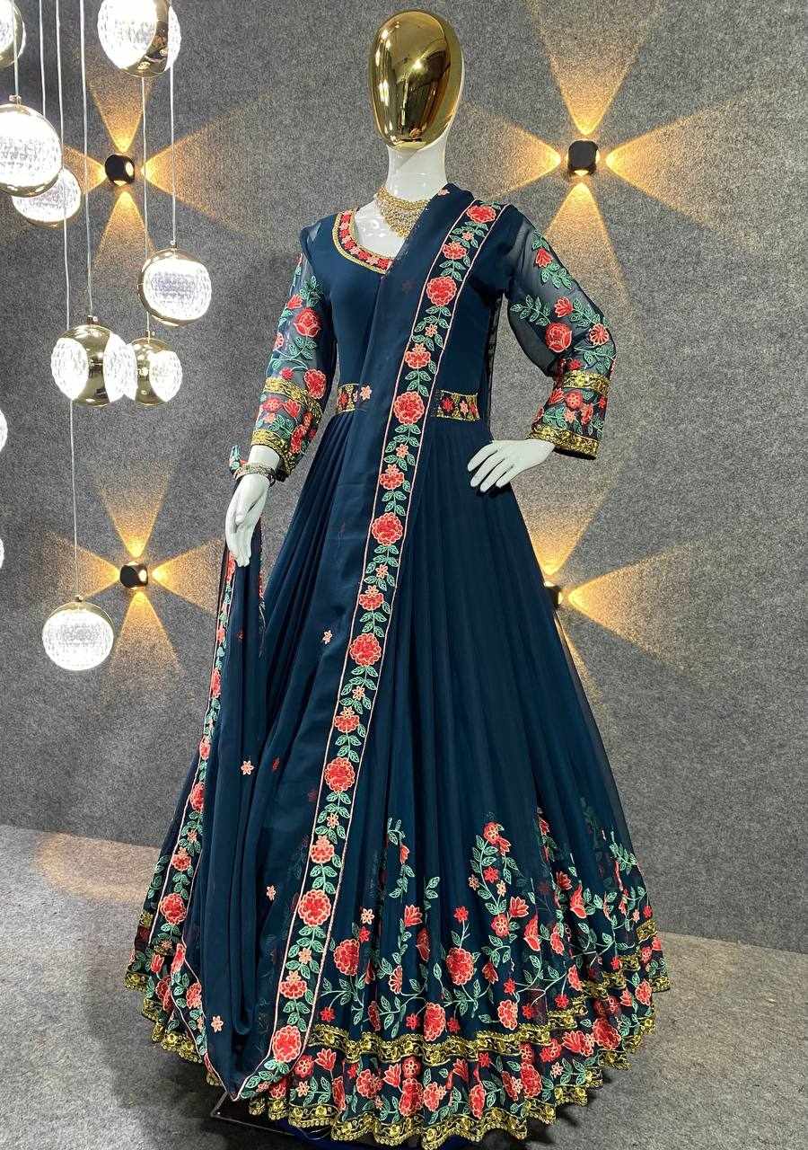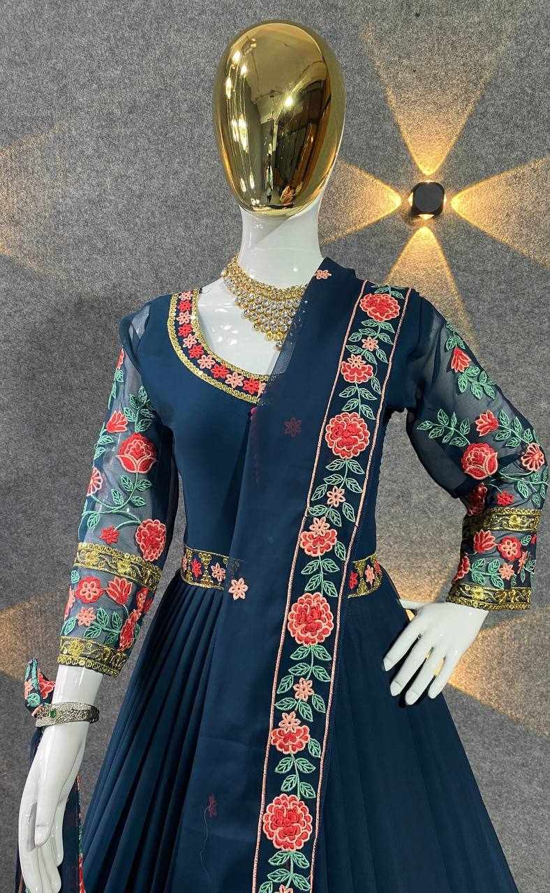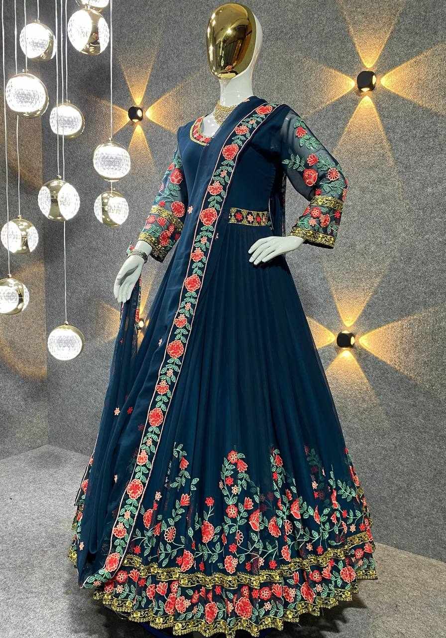 GOWN FABRIC: FOX GEORGETTE WITH EMBROIDERY WORK WITH FULL SLEEVES