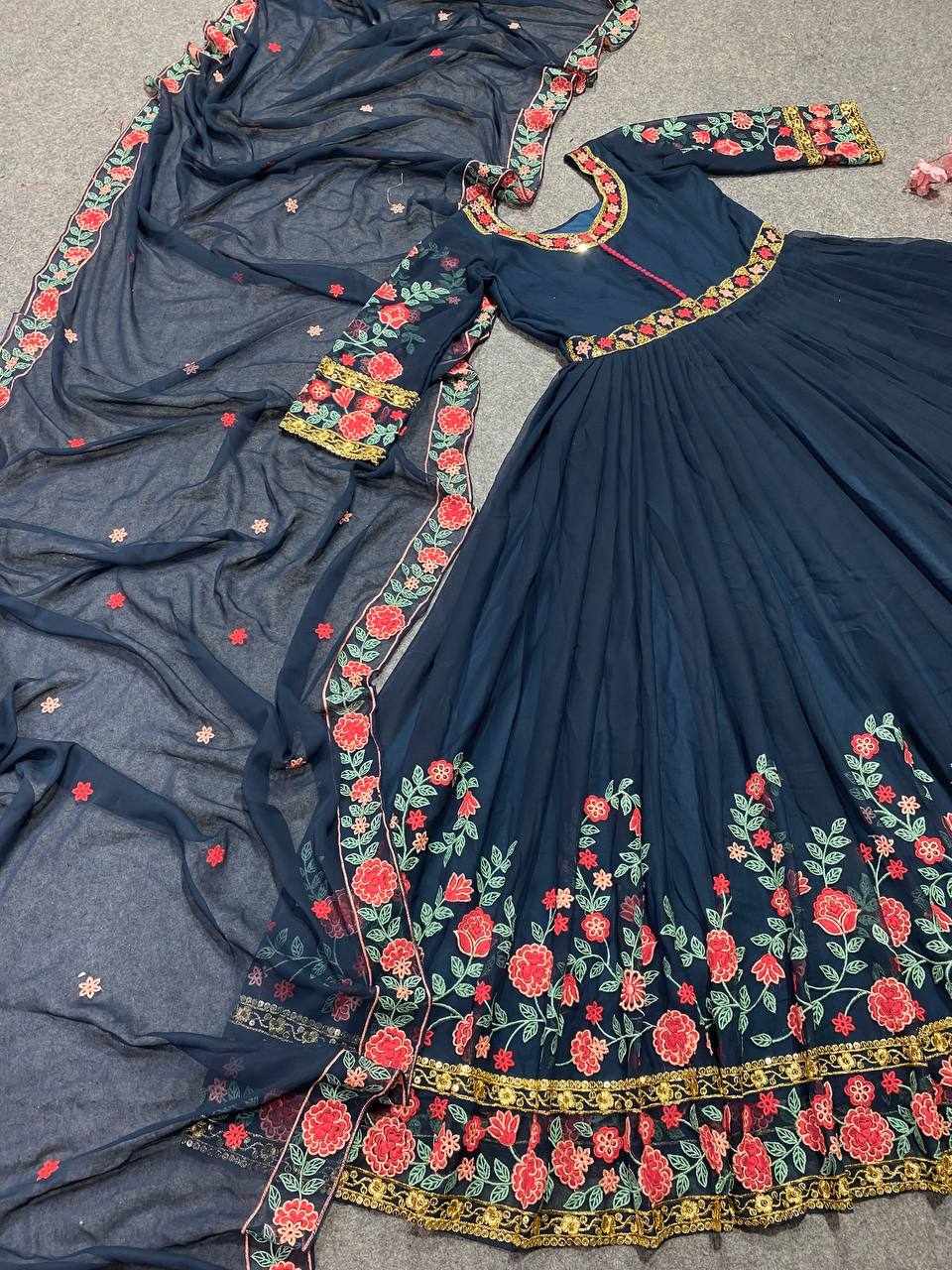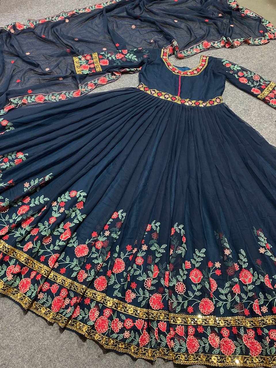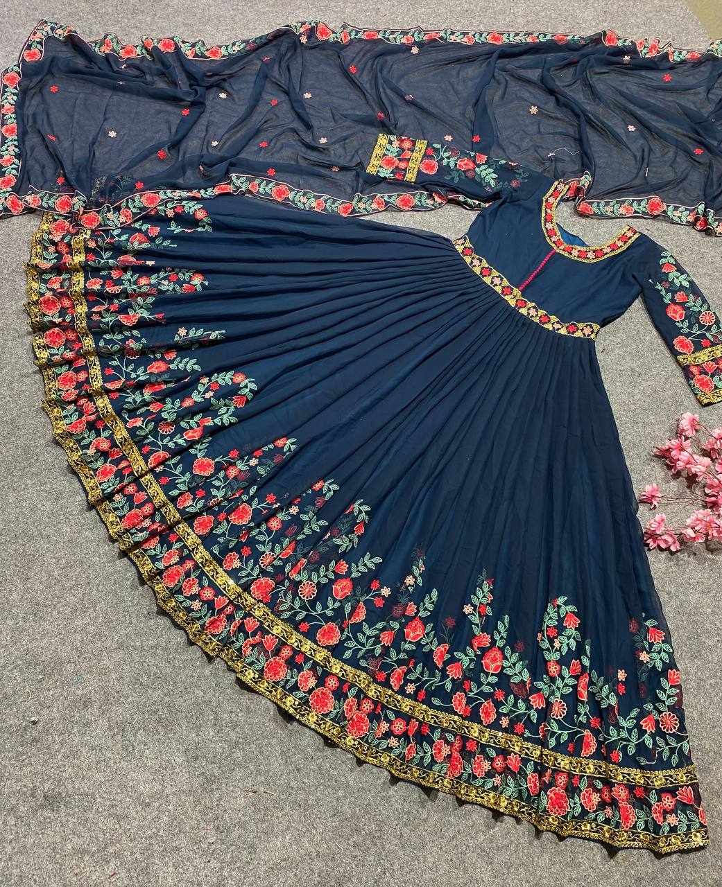 GOWN FABRIC: FOX GEORGETTE WITH EMBROIDERY WORK WITH FULL SLEEVES