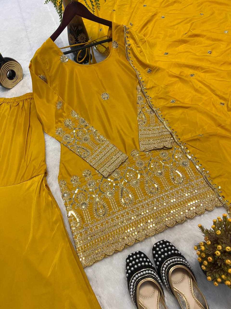 | Name : | MF 455 Heavy Natural Crep Silk Top With Sarara Plazo |