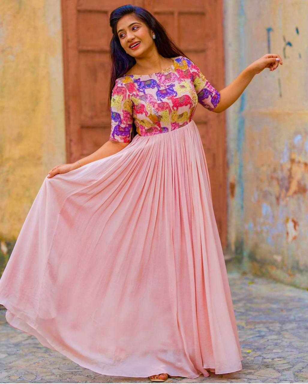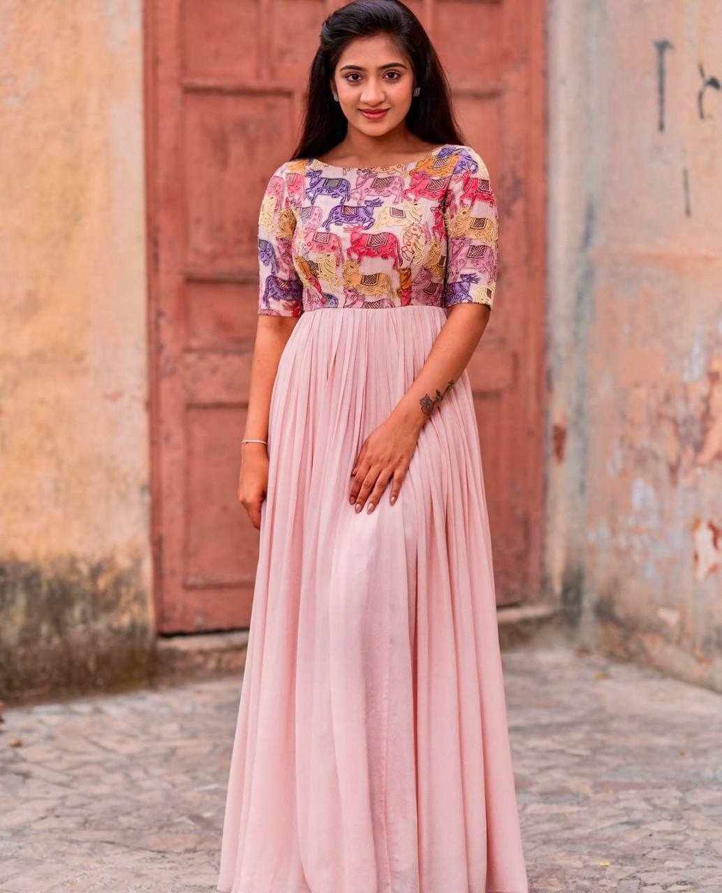 | Name : | PC 413 Pink Handwork & Kalamkari Print Gown |