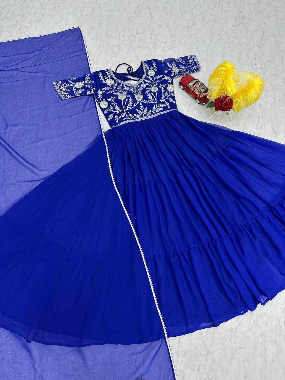 | Name : | PC 459 Blue Fox Georgette Embroidered Gown |
