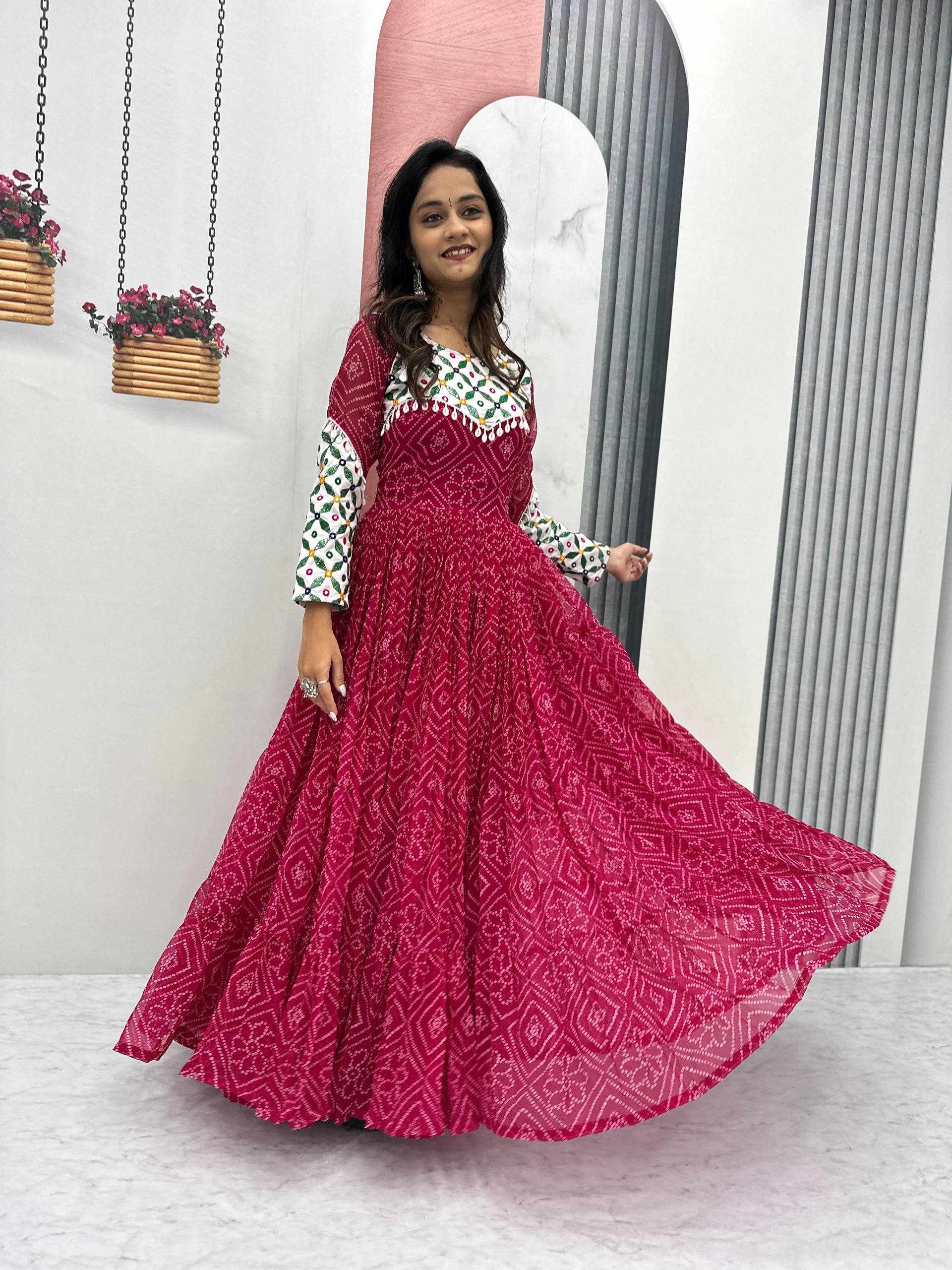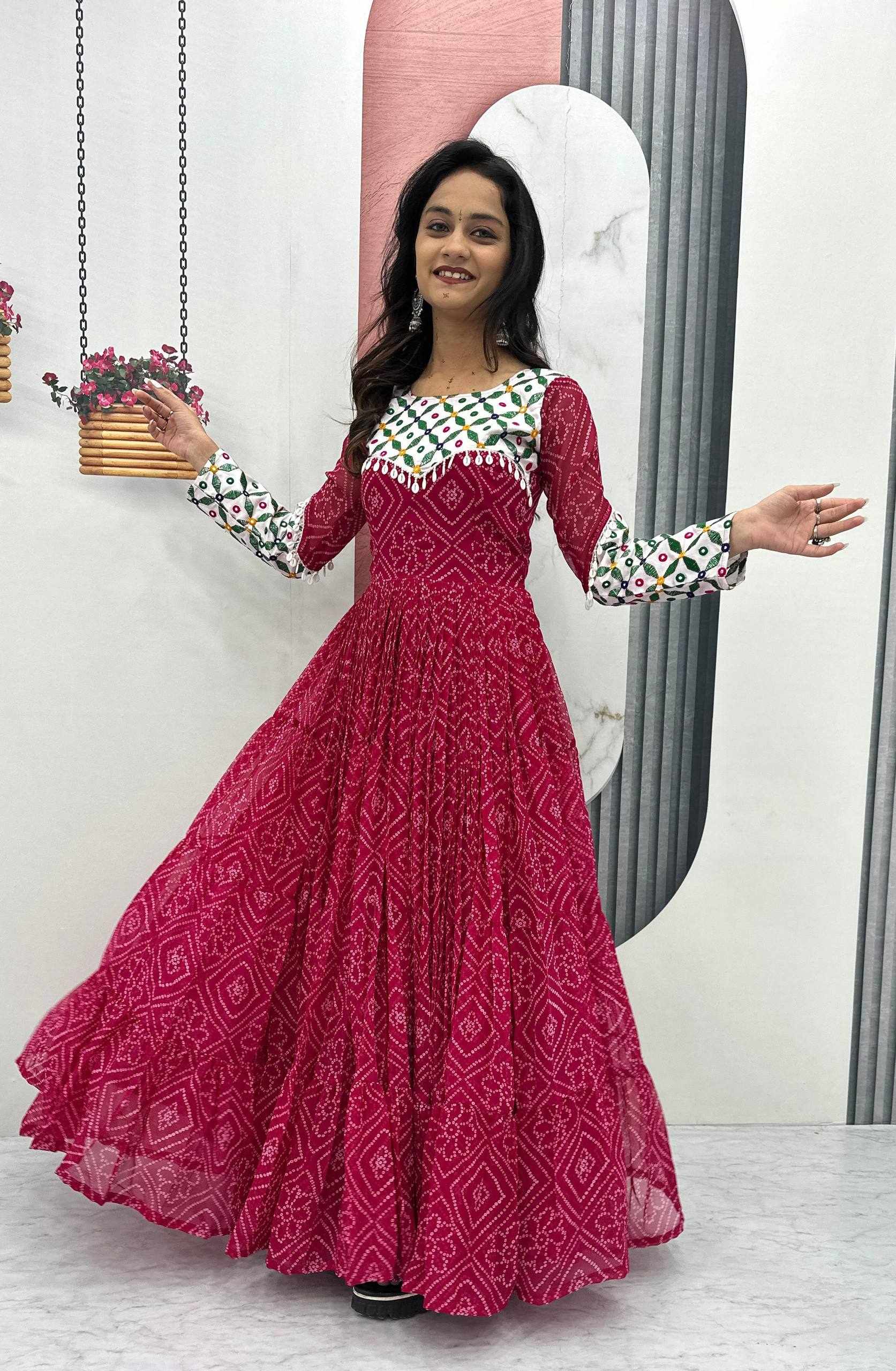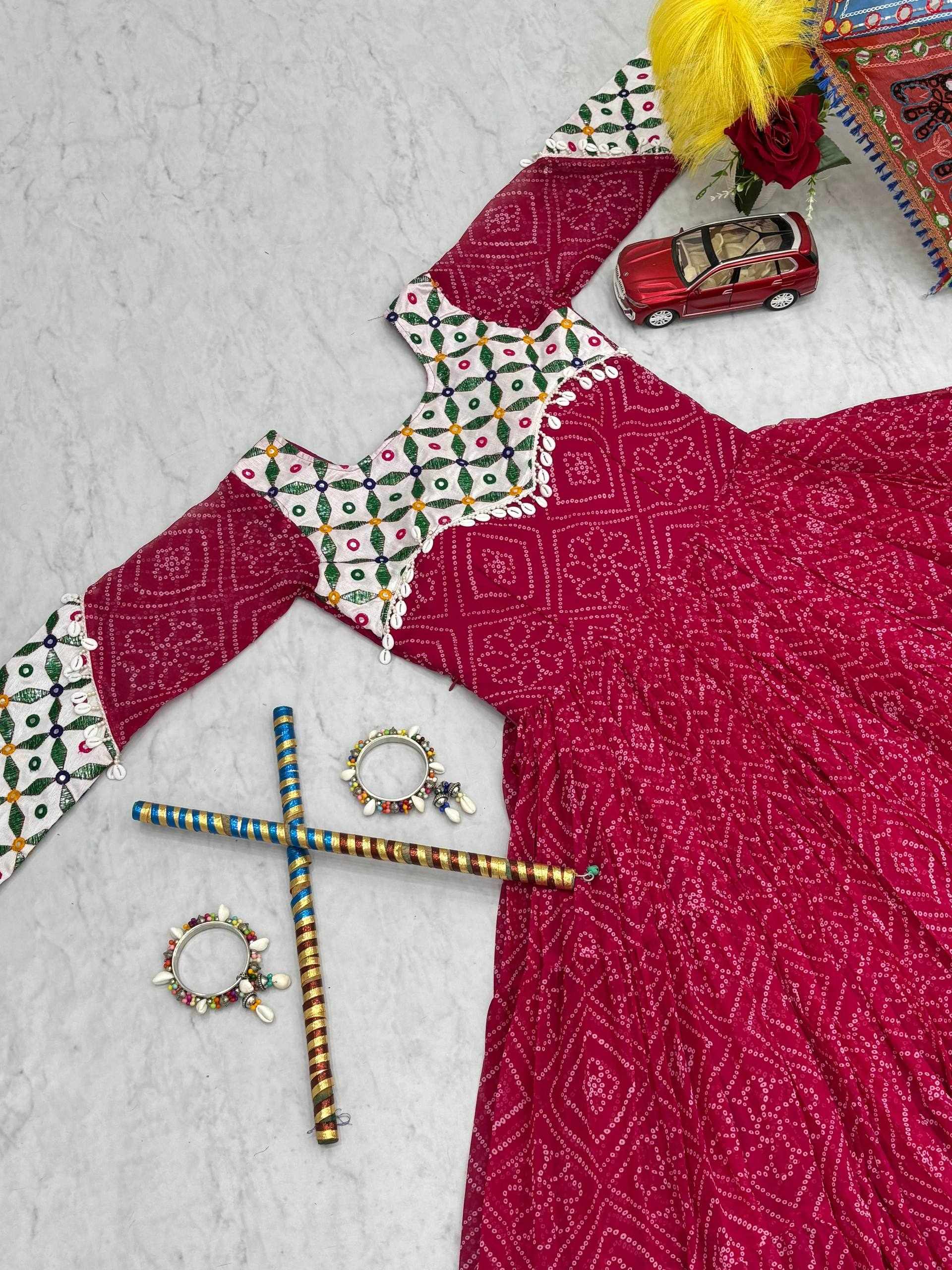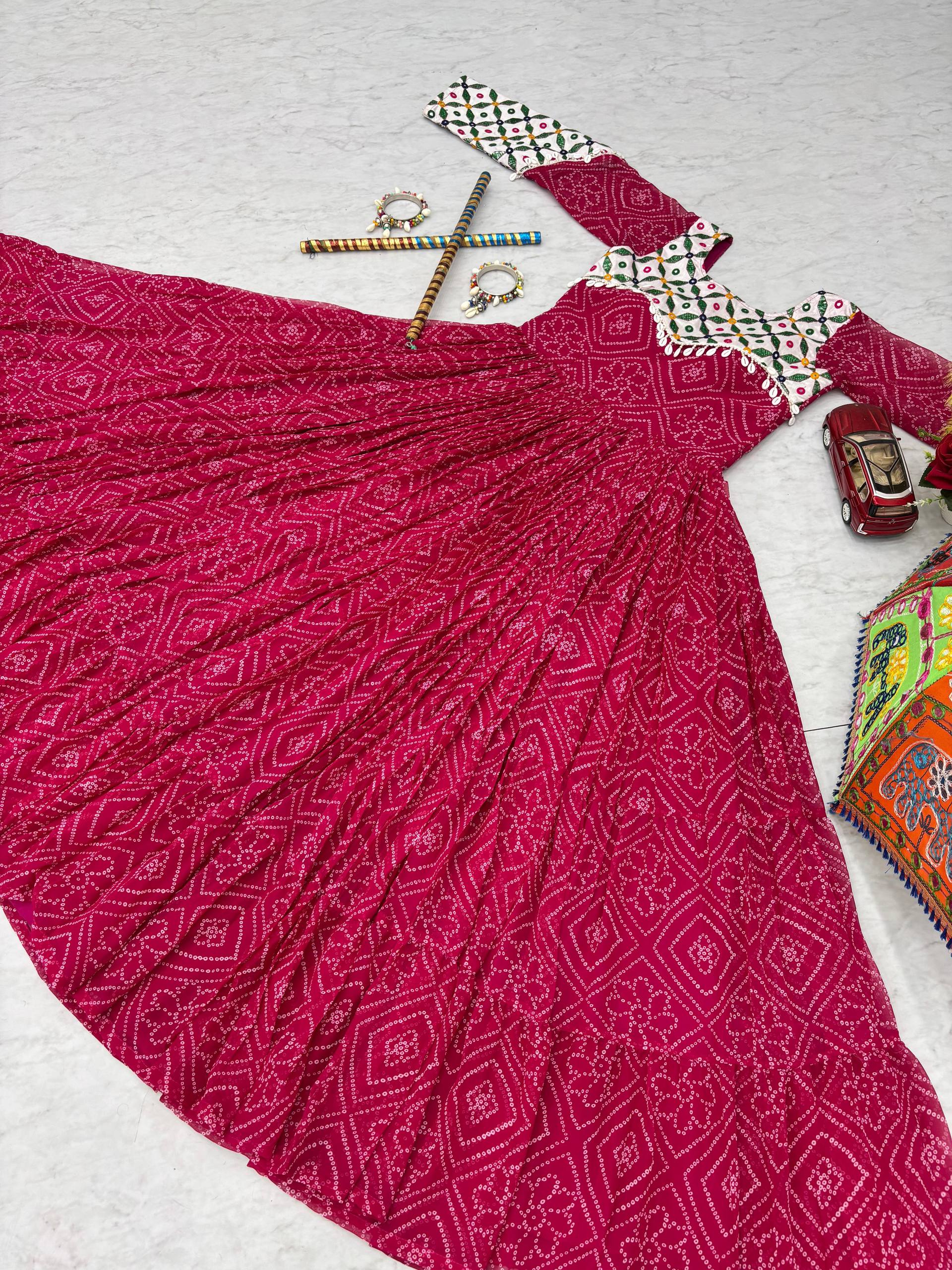 | Name : | Pc N42 Pink Fox Georgette Gamathi Work with Kodi Lace Navratri Special Gown |