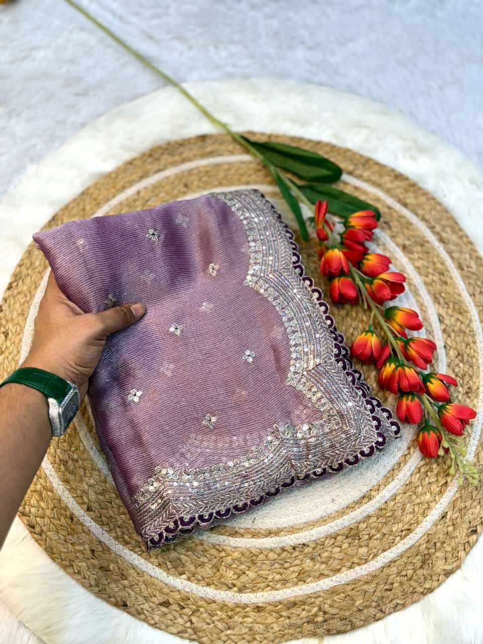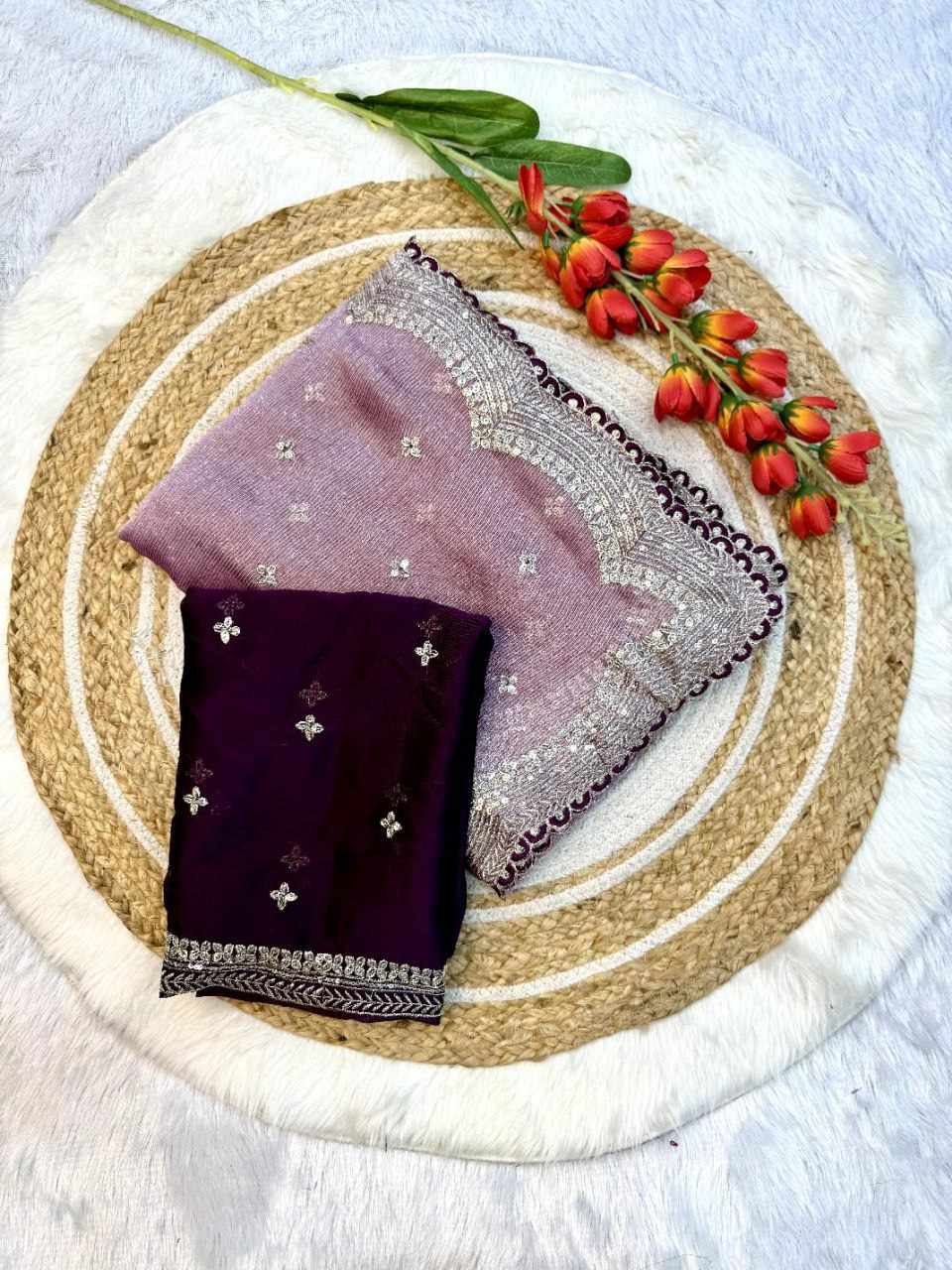 | Name : | RC Purple Sitara Thread Embroidery Beautiful Saree |