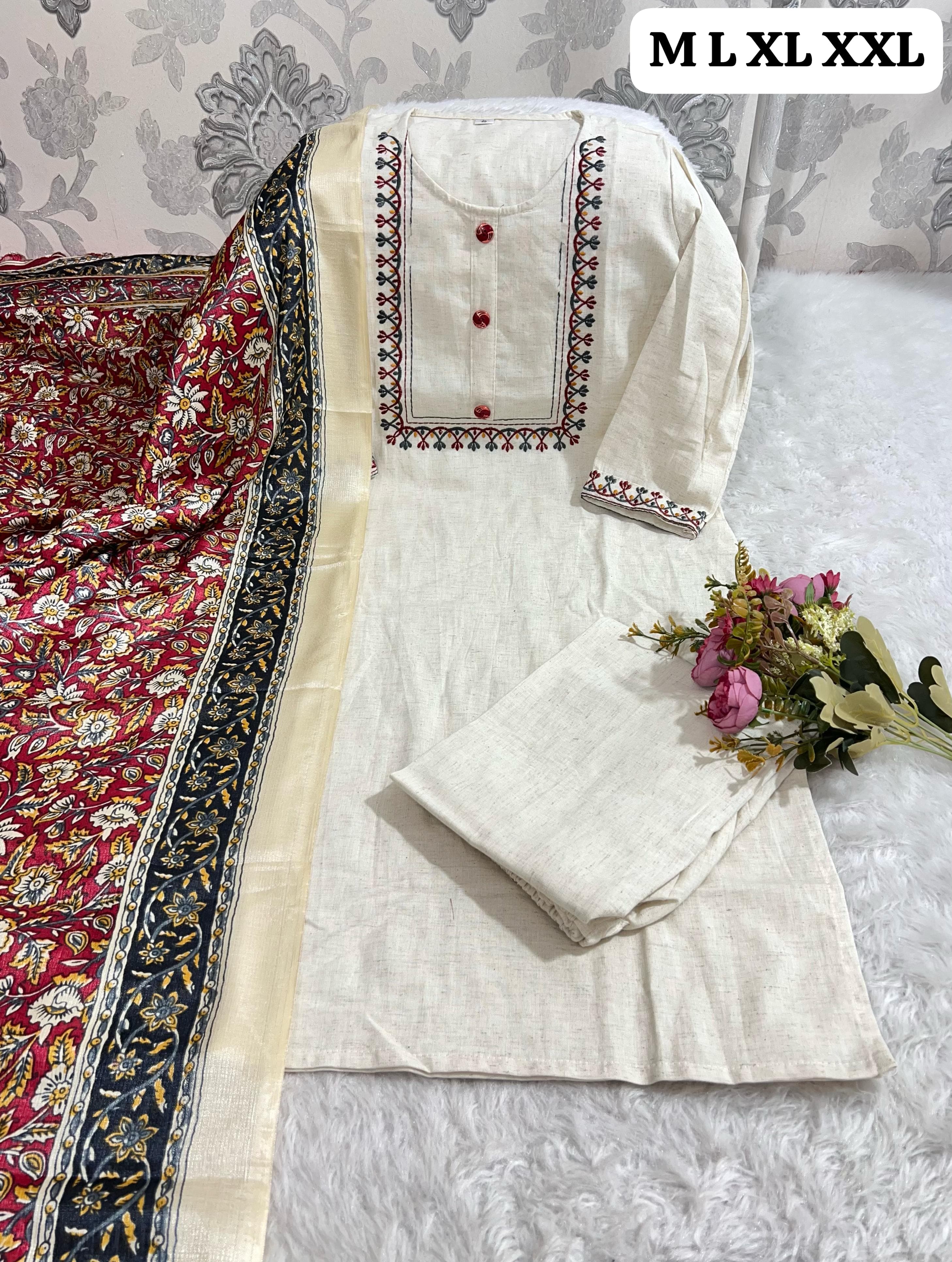 SF 2JU Beautiful Cotton Kurti With Pant And Silk Chanderi Digital Print Dupatta 330