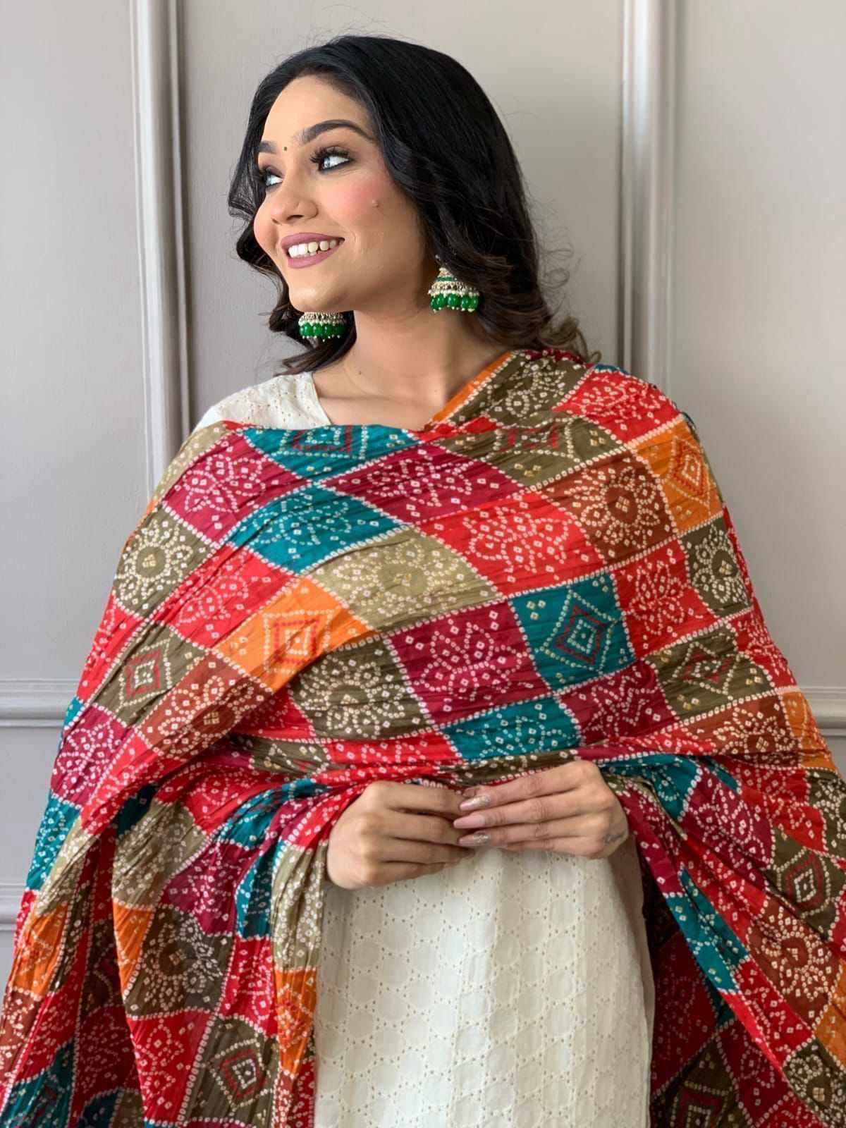 SF 31 Schiffli chickan Cotton With full printed cotton silk duppata 359