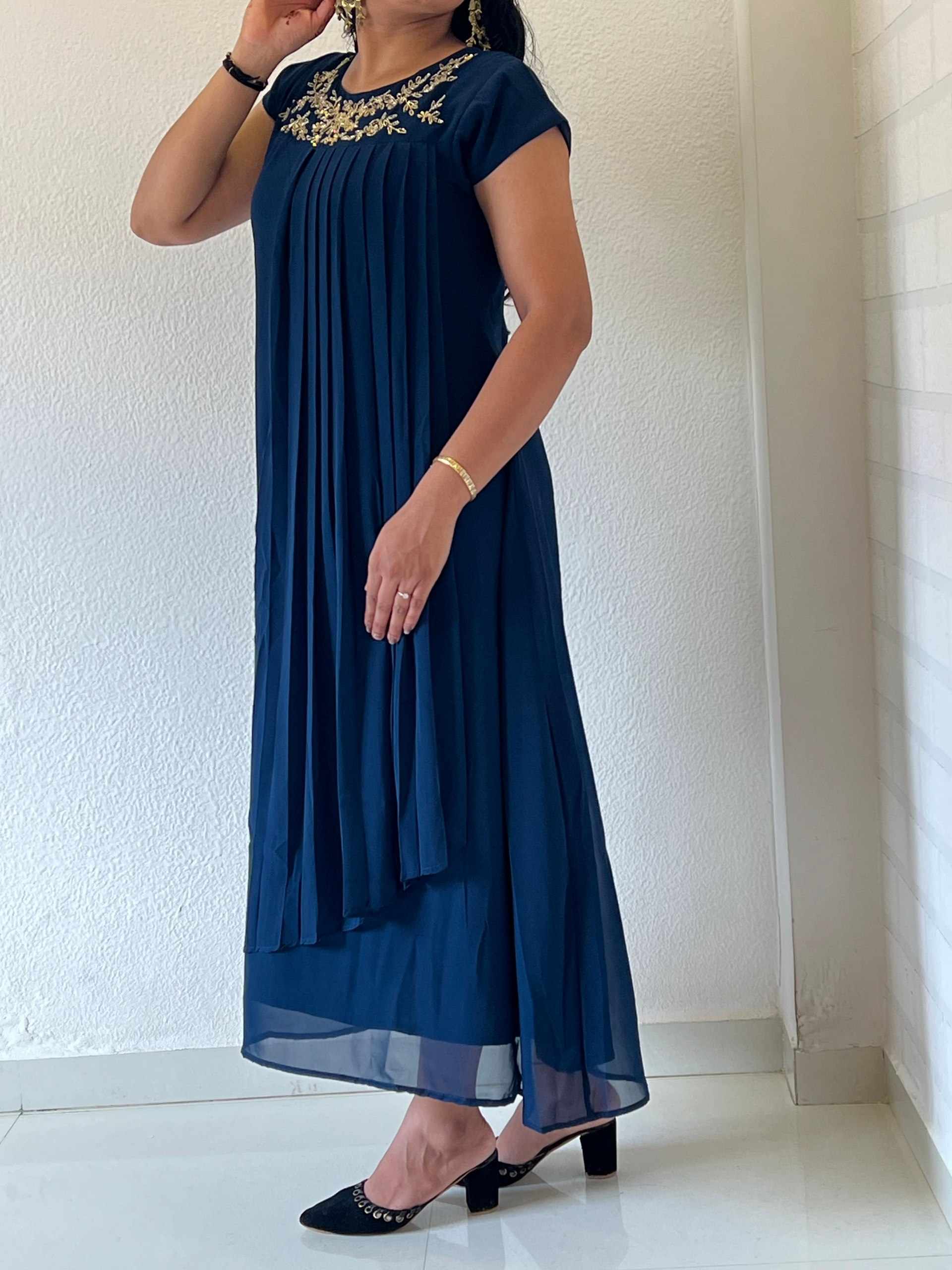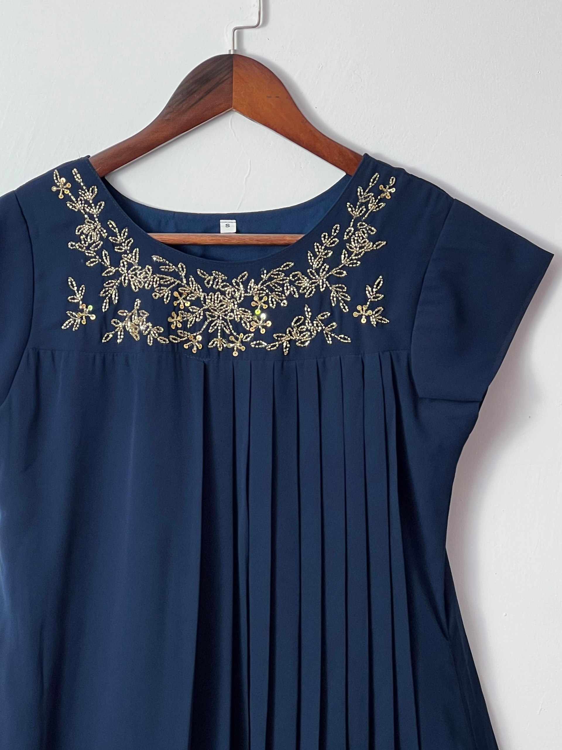 FABRIC - Blooming Georgette Handwork Kurti with Cap Designer Sleeves (Khatli - Maggam Wo